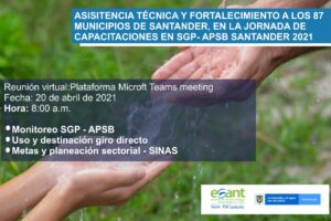 Noticias Mesa de Trabajo Municipio de Vélez 29/07/2021 Comentar #AestaHora | En mesa de trabajo revisamos avances de los diferentes proyectos para el abastecimiento de agua potable del Casco Urbano del municipio de #Vélez. […] Seguir Leyendo Visita La Belleza 16/07/2021 Comentar #ESANTESP | ¡Visitamos el municipio de #LaBelleza!Revisamos avances de la ejecución del proyecto Plan Maestro de Alcantarillado del centro poblado La Quitaz del municipio de […] Seguir Leyendo Mesa Técnica San Benito Comentar #AestaHora | En mesa técnica junto al Alcalde del Mpio de #SanBenito Doctor, Jaime Amado Argüello, revisamos proyecto del Acueducto para el Casco Urbano del […] Seguir Leyendo Avance Planta de Tratamiento Enciso Comentar #AEstaHora | Verificamos el avance de la Planta de Tratamiento de Agua Potable de Plan de Llano del municipio de #Enciso junto a los contratistas […] Seguir Leyendo Visita Técnica Puerto Parra Comentar #SantanderProgresa | ¡Buenas noticias! En compañía de Ingenieros especialistas, topógrafo y del Alcalde Mpal, Doctor Abelardo Pérez, analizamos estudios del Plan Maestro de Alcantarillado para […] Seguir Leyendo Comité Técnico Embalse Málaga Comentar #AestaHora | Revisamos avances de la obra del embalse No. 2 del municipio de #Málaga. Nuestro equipo de Proyectos, en compañía de especialistas en Geotécnica […] Seguir Leyendo Visita Técnica Proyecto SIASAR San José de Suaita Comentar #ESANTESP | ¡Seguimos en nuestro recorrido por el municipio de #Suaita! Con el objetivo de realizar levantamiento de información y registro rural y conocer el […] Seguir Leyendo Visita Técnica Los Santos 08/07/2021 Comentar #AestaHora | ¡Nos encontramos en el municipio de #LosSantos! Con el objetivo de optimizar la prestación del servicio de acueducto y alcantarillado para el municipio […] Seguir Leyendo Visita Técnica Málaga Comentar #SantanderProgresa | Con el propósito de aumentar la continuidad del servicio de Agua Potable para el municipio de #Málaga, nuestro equipo de proyectos en compañía […] Seguir Leyendo Visita Técnica Vereda Josef Municipio de Suaita Comentar #ESANTESP | Con el objetivo de realizar inventario al acueducto rural de la Vereda Josef del municipio de #Suaita, nuestro equipo de Operaciones realizó visita […] Seguir Leyendo Visita Técnica Municipio de Enciso Comentar #SantanderProgresa | ¡Visitamos el municipio de #Enciso! Nuestro equipo de Proyectos, realizó visita técnica de seguimiento a las obras del sistema de acueducto para la […] Seguir Leyendo Optimizar Tratamiento de Agua Potable Villanueva Comentar #ESANTESP | Con el objetivo de optimizar el proceso de tratamiento de agua potable para el municipio de #Villanueva, nuestro equipo de Proyectos realizó visita […] Seguir Leyendo Un Millón de Amigos 30/06/2021 Comentar #SantanderProgresa | ¡El planeta necesita de todos! Con la iniciativa de la Admón Mpal de #Enciso denominada “Un Millón de Amigos”, se dio inicio a […] Seguir Leyendo Visita Municipio del Playón Comentar #FelizMartes | ¡Progreso para el municipio del #Playón! Con el ánimo de dar reinicio a las obras de optimización y repotenciación del sistema del Plan […] Seguir Leyendo Visita Municipio de Guavatá Comentar #AestaHora | ¡Seguimos en recorrido, estamos en #Guavata! Nuestro Gobernador de Santander, Doctor Mauricio Aguilar Hurtado anuncia que en pocos meses entregará vehículo recolector de […] Seguir Leyendo Visita Municipio de Vélez Comentar #SantanderProgresa | ¡Visitamos el municipio de Vélez! Junto al señor Gobernador de Santander, Doctor Mauricio Aguilar Hurtado y la Alcaldesa Mpal, Doctora Angélica Mateus, se […] Seguir Leyendo Visita Municipio de Chipatá Comentar #AestaHora | ¡Con felicidad nos recibe el bello municipio de #Chipatá! Nuestro compromiso por Santander no termina, seguimos acompañando a nuestro Gobernador de Santander, Doctor […] Seguir Leyendo Visita Municipio de San Benito Comentar #AEstaHora | ¡Seguimos trabajando por el bienestar de Santander! Junto al señor Gobernador de Santander, Doctor Mauricio Aguilar Hurtado revisamos las necesidades para la gestión […] Seguir Leyendo Visita Técnica Municipio de Puerto Parra 15/06/2021 Comentar #ESANTESP | ¡Seguimos trabajando por el bienestar de #Santander!Hoy desde el municipio de Puerto Parra capacitamos a los operarios de la Unidad de Servicios Públicos, […] Seguir Leyendo Visita Técnica Municipio de Contratación Comentar #ESANTESP | ¡Nos encontramos en el municipio de #Contratación!A esta hora se realiza capacitación sobre el uso adecuado del vehículo recolector de Residuos Sólidos para […] Seguir Leyendo Mesa Técnica Municipio de Los Santos Comentar #ESANTESP | En mesa técnica se implementaron estrategias de mejora para la prestación del servicio de Acueducto y Alcantarillado del municipio de #LosSantos. Durante esta […] Seguir Leyendo Mesa de Trabajo Acueducto Regional del Chicamocha Comentar #SantanderProgresa | En mesa de trabajo se revisaron avances de los estudios de prefactibilidad Y factibilidad de una planta solar como alternativa para el Acueducto […] Seguir Leyendo Visita Técnica Municipio de Matanza Comentar #AestaHora | Se realiza capacitación sobre el uso adecuado del vehículo recolector de Residuos Sólidos para el municipio de #Matanza, en el desarrollo de la […] Seguir Leyendo Visita Técnica Municipio de Vélez Comentar #ESANTESP | ¡Progreso y desarrollo para el municipio de Vélez! Se realizó visita técnica para verificar el avance del proyecto Plan Maestro de Acueducto y […] Seguir Leyendo Junta Directiva Esant ESP 13/04/2021 Comentar #AEstaHora | Gerente Ing. Nohora Cristina Flórez Barrera, en compañía del Sr. Gobernador de Santander Dr. Mauricio Aguilar Hurtado, Asesora del Despacho Dra. Aida Margarita […] Seguir Leyendo Estrategias Educación Ambiental Comentar #ESANTESP | El día de ayer, nuestra Directora de Proyectos Ing. Carolin