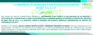 Noticias ¡En marcha proyecto de agua potable y saneamiento básico para Barichara! 21/01/2017 Comentar Iniciamos construcción de redes de acueducto y alcantarillado para las viviendas de interés social La Primavera Desde el pasado lunes 16 de enero del año […] Seguir Leyendo 19/01/2017 Comentar ¡Avanzamos en nuestra ruta por la eficiencia y calidad de los servicios públicos domiciliarios de Santander! Seguir Leyendo 16/01/2017 Comentar ¡Avanzamos en nuestra ruta por la eficiencia y calidad de los servicios públicos domiciliarios de Santander! Seguir Leyendo Esant rindió cuentas a niños y jóvenes 20/12/2016 Comentar ¡Defensoritos del Agua, una experiencia de éxito en Santander! A través de actividades recreativas y pedagógicas, la Empresa de Servicios Públicos de Santander (Esant) presentó […] Seguir Leyendo Segunda fase tendría un costo aproximado de 15 mil millones de pesos 23/11/2016 6 comentarios Esant y Minvivienda efectuaron visita técnica en Acueducto Chicamocha del municipio de Los Santos para viabilizar segunda fase del proyecto Mediante una visita de revisión […] Seguir Leyendo Actores ambientales y universidades, aliados en mejoramiento de la calidad del agua Comentar Esant inició Mesa de Trabajo de Agua y Saneamiento Básico para emprender estrategia en disminución del Índice de Riesgo en la Calidad del Agua La […] Seguir Leyendo ¡Por la optimización de los servicios públicos! 21/11/2016 Comentar Esant capacitó en IRCA e IANC a municipios de la Provincia Metropolitana en Expedición Santander Durante la séptima versión de Expedición Santander -‘La Provincia Nos […] Seguir Leyendo Ochenta y cinco niños dibujaron por el cuidado del agua Comentar Los niños piedecuestanos ilustraron la ruta de conservación del agua en la séptima versión de Defensoritos del Agua Con una exitosa participación de 85 niños […] Seguir Leyendo ¡Por la ruta de la optimización de los servicios públicos! 14/11/2016 Comentar Esant fortalece estrategia de capacitación en IRCA e IANC en la Provincia de Soto Norte Durante la Expedición Santander -‘La Provincia Nos Une’- la Empresa […] Seguir Leyendo Más de 60 niños dibujaron por el cuidado y uso eficiente del agua Comentar Con orgullo y pasión por Santander, los niños de Soto Norte pintaron la ruta de conservación del agua Con una participación de más de 60 […] Seguir Leyendo Esant presentó informe en IRCA y PTAP ante Asamblea Departamental 03/11/2016 Comentar Plan Departamental de Aguas impulsará programa para disminuir el riesgo en la calidad del agua en Santander Mediante informe presentado a la Asamblea Departamental, quedó […] Seguir Leyendo Esant revisó cumplimiento de la primera etapa del Convenio 1600 01/11/2016 Comentar Con aportes del Plan Departamental de Aguas, culmina fase tres de la etapa uno de la PTAR El Santuario de Piedecuesta Con recursos por el […] Seguir Leyendo Los ‘niños Yariguíes’ ilustraron la ruta de conservación del agua 31/10/2016 Comentar Puerto Wilches estableció récord en concurso de dibujo Nos Une el Cuidado del Agua de la Esant Con gran éxito y un récord de participación de […] Seguir Leyendo Con orgullo y profesionalismo serviremos a la Provincia de Mares 28/10/2016 Comentar La Esant se va de ‘Expedición’ a Puerto Wilches Con orgullo y pasión por servir a la región, la Empresa de Servicios Públicos de Santander […] Seguir Leyendo Avanza estructuración del Plan Ambiental de Santander Comentar Esant y CAS adelantan trabajo interdisciplinario en estructuración del Plan Ambiental del PAP y PDA Mediante mesa de trabajo interinstitucional, la Empresa de Servicios Públicos […] Seguir Leyendo Visita de inspección previa al inicio de ejecución del convenio 27/10/2016 Comentar El 28 de octubre inicia convenio interadministrativo que determinará las causas del colapso de la Represa La Batanera Así quedó ratificado mediante una visita de […] Seguir Leyendo Esant se vinculó al Quinto Simulacro Nacional de Respuesta a Emergencias 26/10/2016 Comentar ¡Juntos por un Santander Menos Vulnerable! Con éxito la Empresa de Servicios Públicos de Santander (Esant), participó en la jornada del Quinto Simulacro Nacional de […] Seguir Leyendo Actores regionales verifican cierre financiero 20/10/2016 Comentar Comité de alianza interinstitucional revisó avances de etapa de preinversiòn de la PTAR del Río de Oro Durante la reunión se revisaron los aspectos de […] Seguir Leyendo ¡Agua de primera calidad para Villanueva! 14/10/2016 Comentar Sin contratiempo y en un 48%, avanzan obras de ampliación y optimización de la planta de tratamiento de acueducto de Villanueva Así quedó confirmado mediante […] Seguir Leyendo Niños de la Provincia de Vélez ‘pintaron’ la ruta de conservación del agua 10/10/2016 Comentar ¡De Vélez y Bolívar son los nuevos Defensoritos del Agua Esant! Más de 80 niños de la provincia veleña participaron en la cuarta versión del […] Seguir Leyendo ¡Esant le cumple a la Provincia de Vèlez! Comentar Un 12% avanza construcción de Plan Maestro del Acueducto y Alcantarillado de Vélez Así quedó reflejado tras una visita técnica de verificación del estado de […] Seguir Leyendo Defensoritos del Agua socializaron estrategia a Colombia Líder 30/09/2016 Comentar Programa Defensoritos del Agua participa en el Premio “Construyendo Sueños” de Colombia Líder 2016- 2019 Los niños Defensoritos del Agua de la Empresa de […] Seguir Leyendo Municipios de la Provincia Comunera reafirmaron su vinculación con la Esant en el Plan Departamental de Aguas 27/09/2016 Comentar En la tercera Expedición Santander, la gerente de la Empresa de Servicios Públicos de Santander (Esant), Mónica Paola Monsalve Monroy, firmó siete otrosi de convenios […] Seguir Leyendo ¡La Provincia Comunera ya tiene sus Defensoritos del Agua! 26/09/2016 Comentar Sesenta y nueve niños oibanos dibujaron por el ‘Cuidad