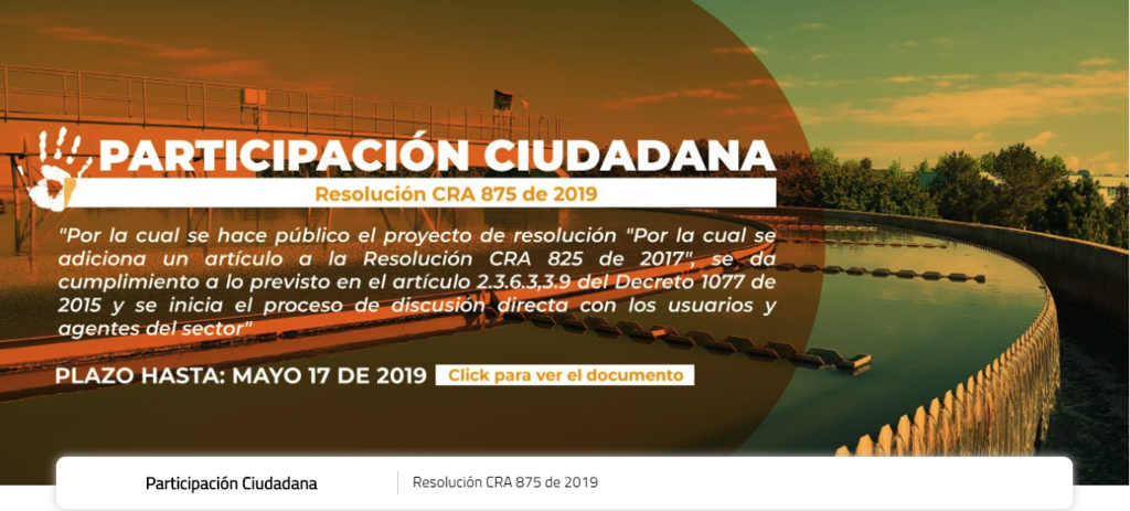 Participación Ciudadana-Resolución CRA 875 de 2019 publicado por eladmin, 16/01/2019 click para ver el documento
