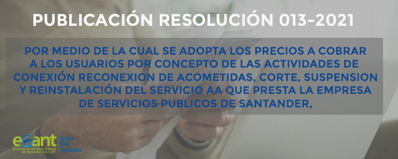 Resolución 13-2021 Precios a Cobrar publicado por TIC WordPress Esant, 26/02/2021 Resolucion-013-2021-Valor-Acometidas