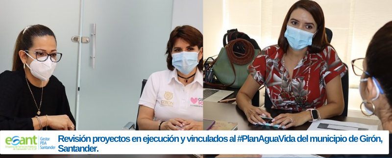 #AestaHora | Junto a nuestra Gerente Ing. Nohora Cristina Flórez Barrera, la Alcaldesa del Mpio de #Girón Dra. Yuliana Rodriguez y de la Sec. de Planeación Mpal Ing. Maria del Rosario Torres, revisan proyectos en ejecución y vinculados al #PlanAguaVida para este municipio.